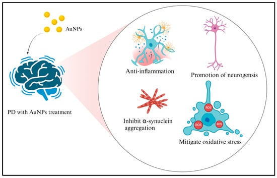AuNPs have been found to possess neuroprotective and anti-inflammatory effects in PD.