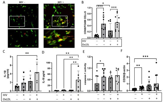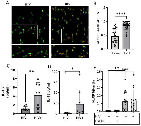 2.1. HIV Increases Foam Cell Formation and NLRP3 Downstream Cytokines