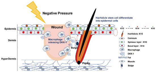 Antimicrobial peptides and proteins (AMPs); Atmospheric pressure (AP); Antimicrobial peptides and proteins (AMPs); Cytokeratin 10 (K10); Cytokeratin 15 (K15); Dickkopf-related protein 1 (DKK-1); Fold change (FC); Growth-differentiation-factor-15 (GDF-15); Hair Follicle Stem Cells (HFSCs); Immunohistochemical (IHC); Institutional Animal Care and Use Committee (IACUC); Keratinocytes (KCs); Negative pressure (NP); Negative Pressure Wound Therapy (NPWT); Regenerating islet-derived protein 3G (Reg3G)