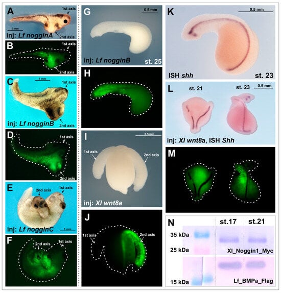 17]. According to the “two inhibitor model” for head induction, this indicates the ability of Noggins to suppress the activity of at least two signaling pathways—BMP and Wnt [