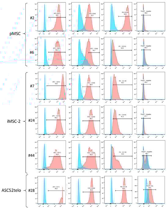 Flow cytometry analysis of MSC-specific markers in pMSC, iMSC and ASC52telo cell lines. #N—passage number.