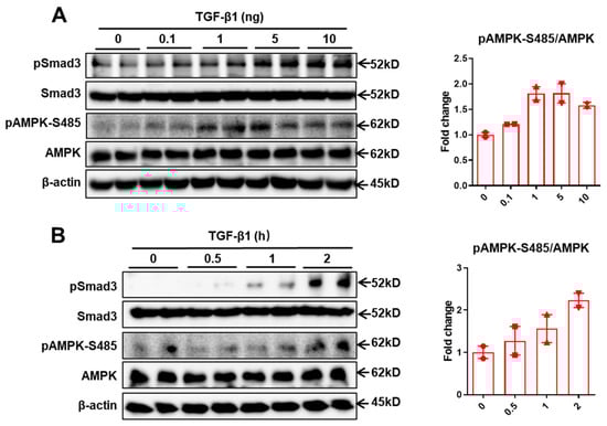 2.1. TGFβ1 Signaling Promotes AMPK Phosphorylation at Serine 485