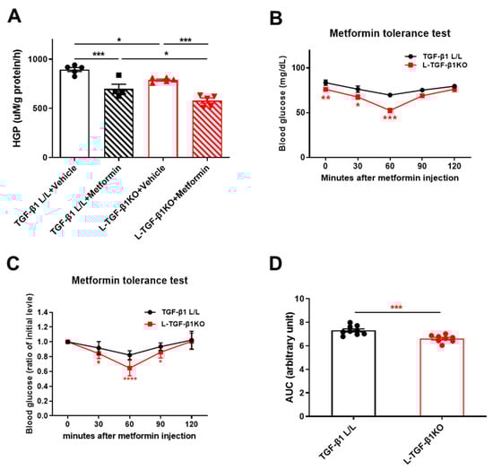 2.5. Hepatic TGF-β1 Deficiency Improves Metformin Sensitivity for Suppressing HGP