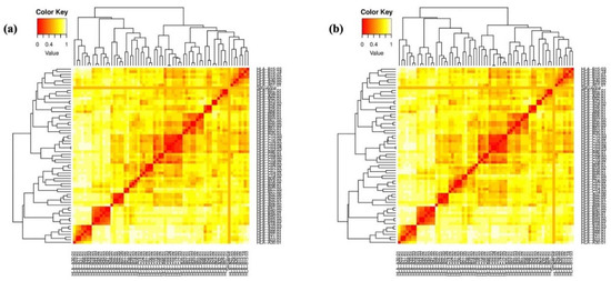 Cluster analysis was performed on the HLA alleles for both MHC molecules, represented through a heat map. (a) The cluster of the MHC-I (VTVYYGVPVW, RAKWNNTLK, SVNFTDNAK, APTKAKRRVV, FNSTWFNSTW, GVAPTKAKR, KVQKEYAFFY, QKEYAFFYKL, TIGKIGNMR, and WQKVGKAMY) epitopes was represented. (b) The cluster of the MHC-II molecules (EIKNCSFNISTSIRG, EPLGVAPTKAKRRVV, FYKLDIIPIDNDTTS, GKVQKEYAFFYKLDI, INCTRPNNNTRKRIR, and GFAILKCNNKTFNGT) epitopes was represented.