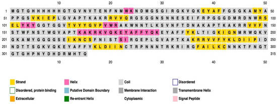 - Buchan, D.W.A.; Jones, D.T. The PSIPRED Protein Analysis Workbench: 20 years on. Nucleic Acids Res. 2019, 47, W402–W407. [Google Scholar] [CrossRef]