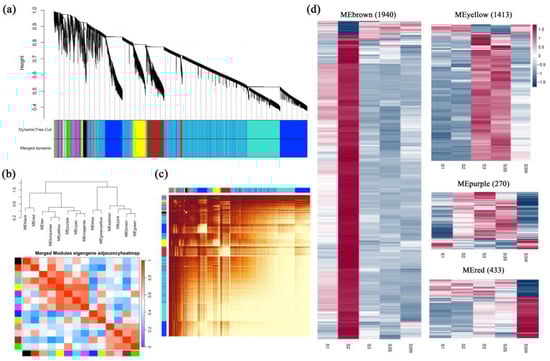 - Langfelder, P.; Horvath, S. WGCNA: An R Package for Weighted Correlation Network Analysis. BMC Bioinform. 2008, 9, 559. [Google Scholar] [CrossRef] [PubMed]