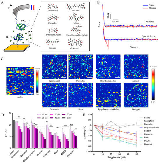 2.2. Probing Single-Molecule Interaction Forces between BAX and Bcl-2 in Polyphenols