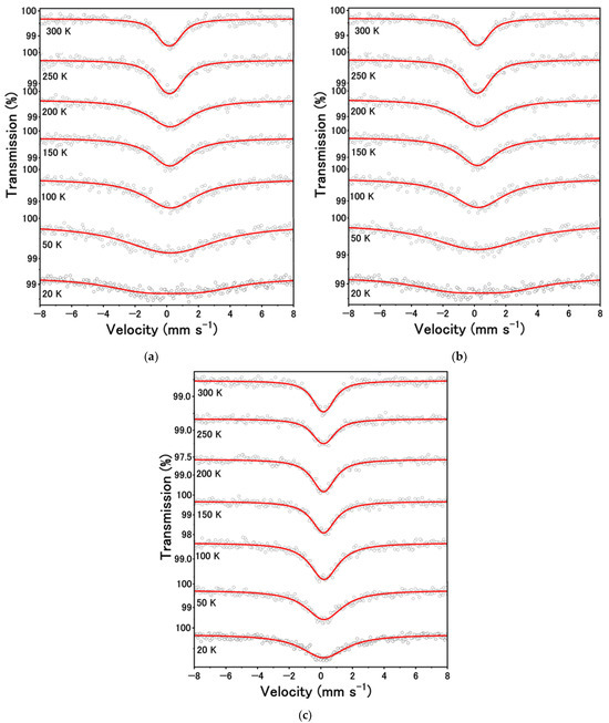 Generally speaking, the recoilless fraction, f, of the Mössbauer nuclei like Fe and Sn can be expressed as follows [47,48]:
