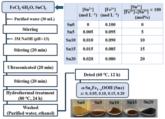 Preparation procedure of α-SnxFe1−xOOH NPs.