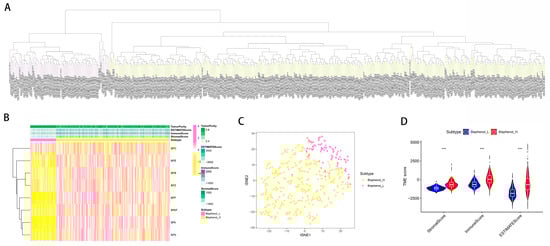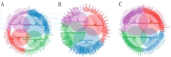https://cn.string-db.org/ (accessed on 15 May 2023)). STRING is a comprehensive resource that compiles protein–protein interaction data from a variety of sources, including high-throughput lab experiments, computational predictions, consolidated genomic context predictions, co-expression data, and findings from relevant scientific literature through automated text mining. We extracted detailed information regarding the proteins and their known or predicted interactions relevant to our study’s gene set. The interactions encompassed both physical and functional associations, providing a broad understanding of the connectivity and potential coordination among the proteins of interest. For the visualization and further analysis of these protein–protein interaction networks, we employed Cytoscape, an open-source bioinformatics software platform R (version 4.0.3) designed for the visual integration of network data with high-dimensional expression data, phenotypic profiles, and other molecular states. Cytoscape enabled us to construct and customize network graphs, enhancing our ability to interpret complex relationships and identify key proteins or clusters within the network that might play crucial roles in the pathogenesis of glioma influenced by BPA exposure.