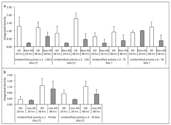 2.2. Gelatinolytic Activities and Their Quantification in CM and Cell Extracts from NAM Co-Cultures Treated or Not with CSF