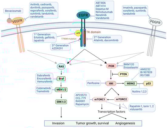 | NCT0062243 | Erlotinib+sirolimus | Phase II in rGB | Erlotinib plus sirolimus was well tolerated but had negligible activity in rGB. | [440] |