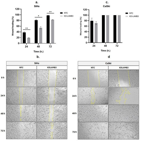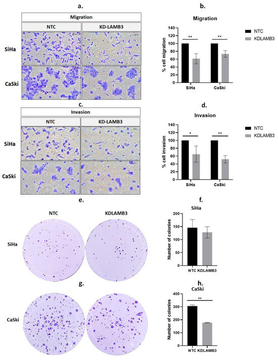 Wattanathavorn, W.; Seki, M.; Suzuki, Y.; Buranapraditkun, S.; Kitkumthorn, N.; Sasivimolrattana, T.; Bhattarakosol, P.; Chaiwongkot, A. Downregulation of LAMB3 Altered the Carcinogenic Properties of Human Papillomavirus 16-Positive Cervical Cancer Cells. Int. J. Mol. Sci. 2024, 25, 2535. https://doi.org/10.3390/ijms25052535