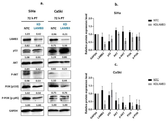 2.8. Effect of LAMB3 siRNA Knockdown on Expression of Proteins Involved in PI3K-AKT Signaling Pathway and p53 Protein