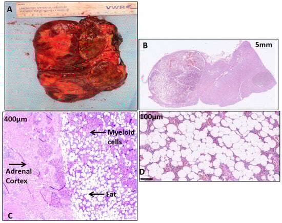 - Damjanov, I.; Katz, S.M.; Catalano, E.; Mason, D.; Schwartz, A.B. Myelolipoma in a heterotopic adrenal gland: Light and electron microscopic findings. Cancer 1979, 44, 1350–1356. [Google Scholar] [CrossRef]