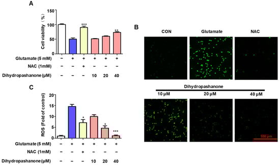 2.4. Effects of Dihydropashanone on Glutamate-Induced HT22 Cell Damage