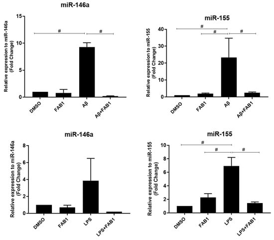 - Guedes, J.R.; Custódia, C.M.; Silva, R.J.; de Almeida, L.P.; de Lima, M.C.P.; Cardoso, A.L. Early miR-155 upregulation contributes to neuroinflammation in Alzheimer’s disease triple transgenic mouse model. Hum. Mol. Genet. 2014, 23, 6286–6301. [Google Scholar] [CrossRef]