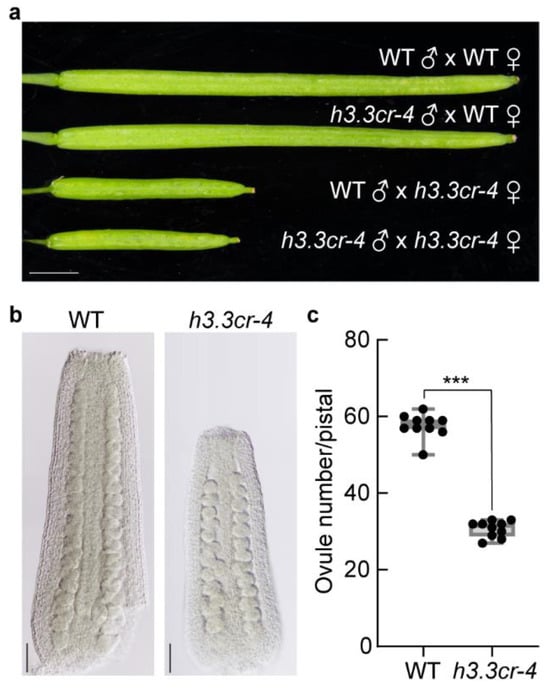 2.5. Hand Pollination Rescued the Fertility Defects of h3.3cr-4