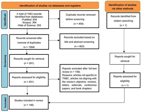 Chicago/Turabian StylePastena, Paola, Hiran Perera, Alessandro Martinino, William Kartsonis, and Francesco Giovinazzo. 2024. "Unraveling Biomarker Signatures in Triple-Negative Breast Cancer: A Systematic Review for Targeted Approaches" International Journal of Molecular Sciences 25, no. 5: 2559. https://doi.org/10.3390/ijms25052559