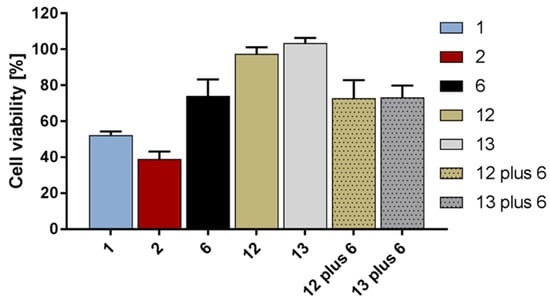 - Mosmann, T. Rapid colorimetric assay for cellular growth and survival: Application to proliferation and cytotoxicity assays. J. Immunol. Methods 1983, 65, 55–63. [Google Scholar] [CrossRef] [PubMed]