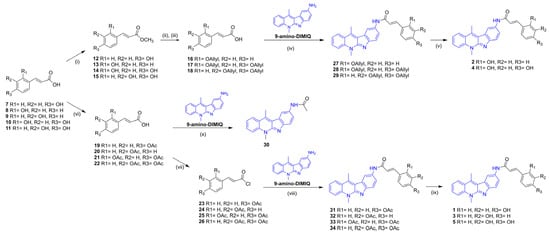 9-[((4-Acetoxy)cinnamoyl)amino]-5,11-dimethyl-5H-indolo[2,3-b]quinoline (31)