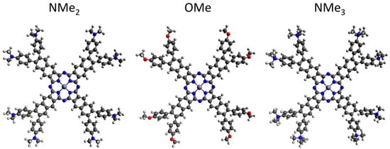 Optimized ground state structures of Zn-OMeNc, Zn-NMe2Nc, and Zn-NMe3Nc, obtained with DFT.