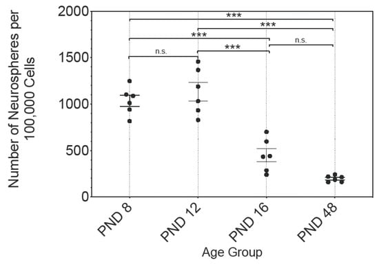 2.2. The Differentiation Capacity of the MGB NSCs Reveals Age-Specific Characteristics
