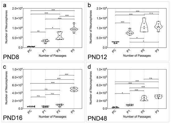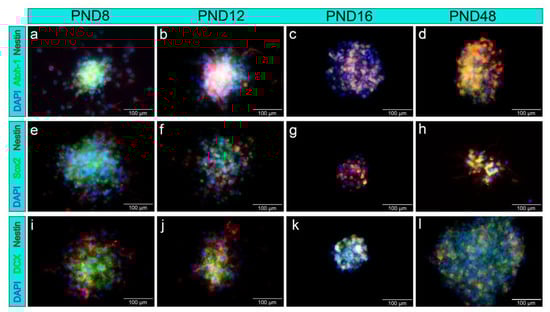 2.1. Cells of the MGB Form Neural Stem and Progenitor Cell Marker Positive Neurospheres with Decreasing Proliferative Capacity up to the Adult Stage