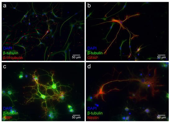- Ferreira, A.; Caceres, A. Expression of the class III beta-tubulin isotype in developing neurons in culture. J. Neurosci. Res. 1992, 32, 516–529. [Google Scholar] [CrossRef] [PubMed]