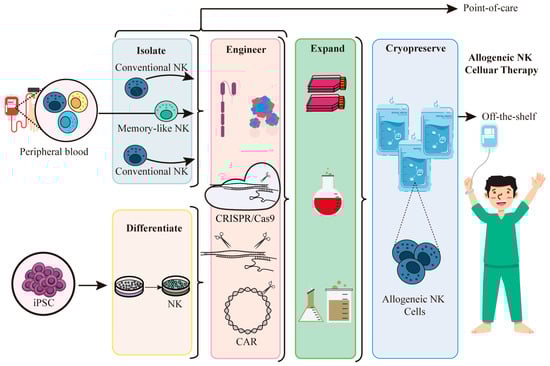 - Saetersmoen, M.L.; Hammer, Q.; Valamehr, B.; Kaufman, D.S.; Malmberg, K.J. Off-the-shelf cell therapy with induced plu-ripotent stem cell-derived natural killer cells. Semin. Immunopathol. 2019, 41, 59–68. [Google Scholar] [CrossRef] [PubMed]