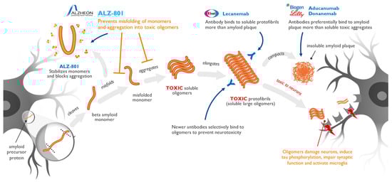 - Tolar, M.; Hey, J.; Power, A.; Abushakra, S. Neurotoxic soluble amyloid oligomers drive Alzheimer’s pathogenesis and represent a clinically validated target for slowing disease progression. Int. J. Mol. Sci. 2021, 22, 6355. [Google Scholar] [CrossRef] [PubMed]