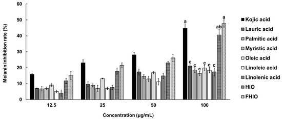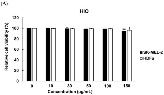 4.4. Analysis of the Skin-Whitening Effects of HIO and FHIO