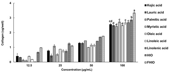 2.5. Evaluation of the Skin Wrinkle Improvement Potential of Hermetia illucens Oil and Fermented Hermetia illucens Oil in Fibroblasts