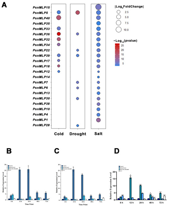 PsnMLP genes that exhibited significant variations in expression under abiotic stress.