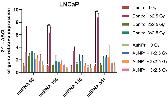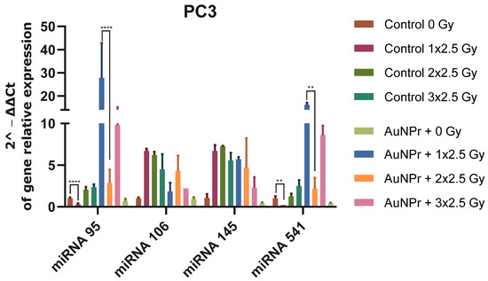 Soares, S.; Aires, F.; Monteiro, A.; Pinto, G.; Faria, I.; Sales, G.; Correa-Duarte, M.A.; Guerreiro, S.; Fernandes, R. Radiotherapy Metastatic Prostate Cancer Cell Lines Treated with Gold Nanorods Modulate miRNA Signatures. Int. J. Mol. Sci. 2024, 25, 2754. https://doi.org/10.3390/ijms25052754