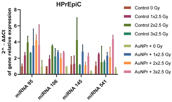 | hsa-miRNA-541-3p | LNCaP, DU145, PC3, and PrEC | TS | HSP27 | ↑ (2–8 Gy) | ↑ PC3, LNCaP, HPrEPiC ↓ DU145 | RR | Mimicking | [37] |