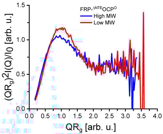 - Golub, M.; Moldenhauer, M.; Schmitt, F.J.; Feoktystov, A.; Mandar, H.; Maksimov, E.; Friedrich, T.; Pieper, J. Solution Structure and Conformational Flexibility in the Active State of the Orange Carotenoid Protein: Part I. Small-Angle Scattering. J. Phys. Chem. B 2019, 123, 9525–9535. [Google Scholar] [CrossRef]