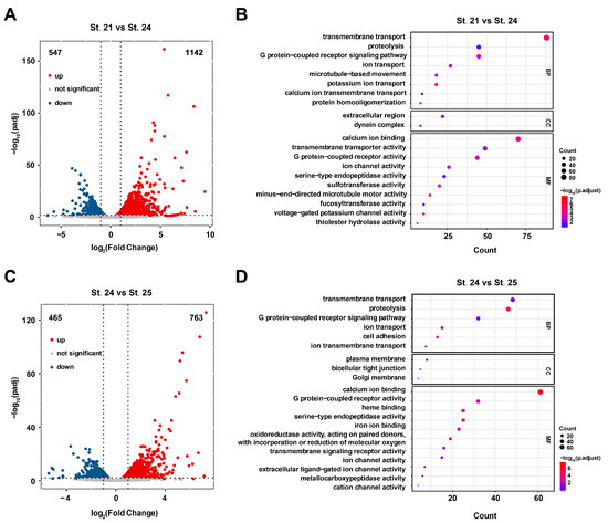 2.3. Transcriptome Profiling of C. savignyi at Different Developmental Stages
