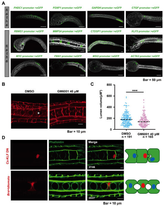 - Wang, Z.; Tan, Z.; Bi, J.; Liu, A.; Jiang, A.; Dong, B. Proteomic identification of intracellular vesicle trafficking and protein glycosylation requirements for lumen inflation in Ciona notochord. Proteomics 2023, 23, e2200460. [Google Scholar] [CrossRef] [PubMed]