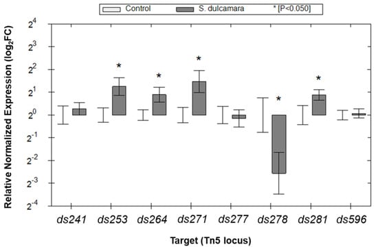 2.4. Expression of the Selected D. solani Genes in the Presence of S. dulcamara Analyzed with qRT-PCR