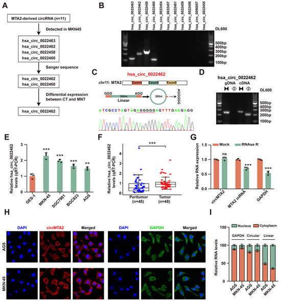 2.1. CircMTA2 Is Upregulated in the GC Tissue and Cells
