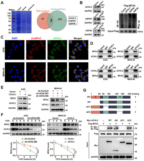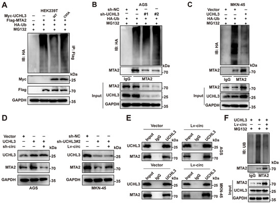 Chicago/Turabian StyleXie, Gengchen, Bo Lei, Zhijie Yin, Fei Xu, and Xinghua Liu. 2024. "CircMTA2 Drives Gastric Cancer Progression through Suppressing MTA2 Degradation via Interacting with UCHL3" International Journal of Molecular Sciences 25, no. 5: 2817. https://doi.org/10.3390/ijms25052817
