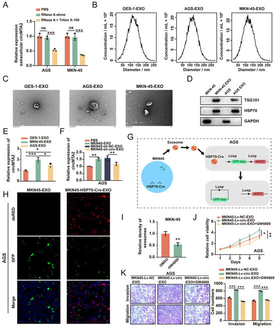 2.6. Exosomal circMTA2 Derived from GC Cells Enhances Cancer Cell Progression