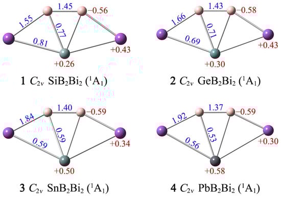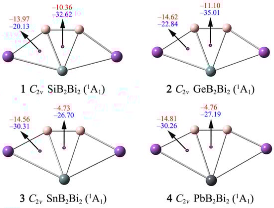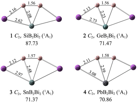 Jin, Y.-X.; Guo, J.-C. XB2Bi2 (X = Si, Ge, Sn, Pb): Penta-Atomic Planar Tetracoordinate Si/Ge/Sn/Pb Clusters with 20 Valence Electrons. Int. J. Mol. Sci. 2024, 25, 2819. https://doi.org/10.3390/ijms25052819