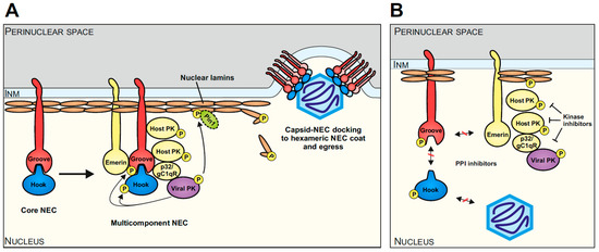 - Häge, S.; Marschall, M. ‘Come together’-The Regulatory Interaction of Herpesviral Nuclear Egress Proteins Comprises Both Essential and Accessory Functions. Cells 2022, 11, 1837. [Google Scholar] [CrossRef] [PubMed]