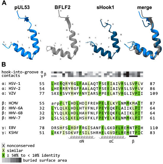- Lösing, J.; Häge, S.; Schütz, M.; Wagner, S.; Wardin, J.; Sticht, H.; Marschall, M. ‘Shared-Hook’ and ‘Changed-Hook’ Binding Activities of Herpesviral Core Nuclear Egress Complexes Identified by Random Mutagenesis. Cells 2022, 11, 4030. [Google Scholar] [CrossRef]