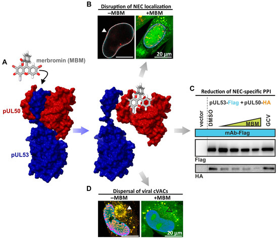 - Alkhashrom, S.; Kicuntod, J.; Häge, S.; Schweininger, J.; Muller, Y.A.; Lischka, P.; Marschall, M.; Eichler, J. Exploring the Human Cytomegalovirus Core Nuclear Egress Complex as a Novel Antiviral Target: A New Type of Small Molecule Inhibitors. Viruses 2021, 13, 471. [Google Scholar] [CrossRef] [PubMed]