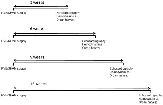 Animal models are valuable for investigating the effects of different drugs on the disease processes. According to our findings, therapeutic interventions in this model can be initiated as early as at three weeks post-PVB, when the pulmonary vascular remodeling and right ventricular hypertrophy have already developed. The duration of the potential treatment might depend on the specific research question and the mode of action of the particular drug. Nevertheless, any improvements in pulmonary vascular remodeling and right ventricular hypertrophy during the 12-week period post-PVB associated with the therapeutic interventions would indicate the positive effects of the treatment.