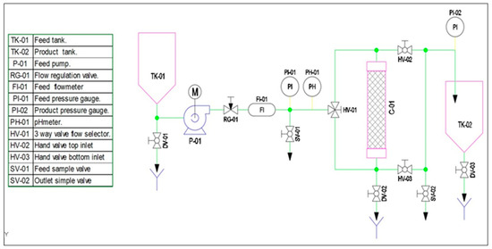 Taking into account the theoretical calculations obtained using previous inputs, a pilot-plant laboratory scale prototype (PPLSP) was built to validate under continuous flows in subsequent tests (Figure 3), if fulfilled, the design criteria regarding the parameters obtained from the in-batch adsorption process.