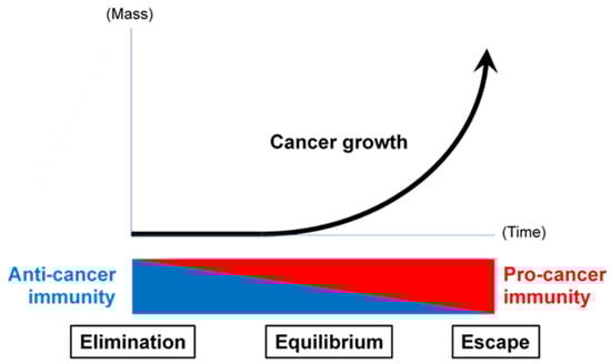 Once they are equipped with immune-regulatory arms, such as the expression of programmed cell death ligand-1 and CD47, and the potential to generate robust immunosuppressive and physical barriers, called the tumor microenvironment (TME) and consisting of immunoregulatory cells and perhaps a dense stroma, cancer cells overcome host immunosurveillance and develop into a cancer mass [26] (Figure 1). We previously assumed that immunosurveillance-evading cancer cells never return to immunosurveillance-susceptible cells. However, we have acquired immune checkpoint inhibitors (ICIs) [27,28] and are still on the way to further reverse this process. This may contribute to the complete elimination of immunosurveillance-evading cancer.